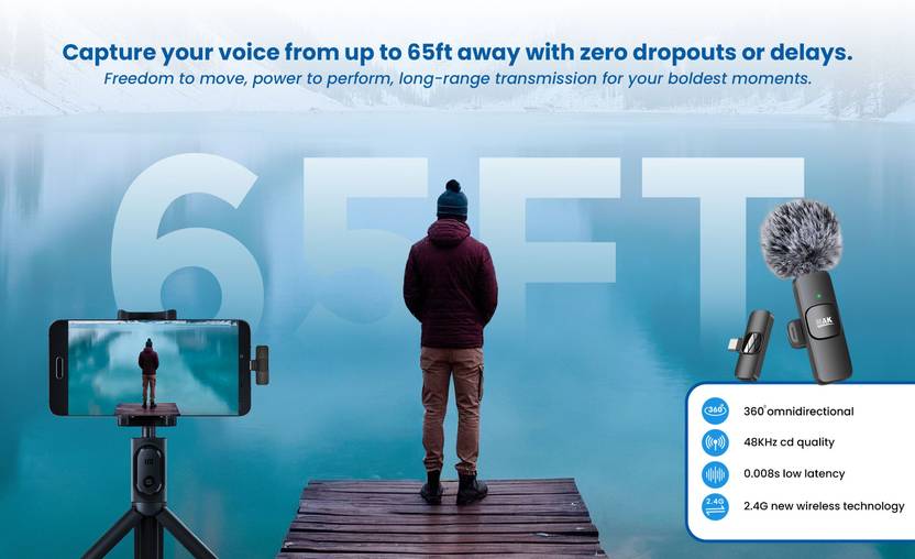 MAK Wireless Noise Cancelling Mic for YouTube Vlogs, Podcasts & Streaming Microphone
